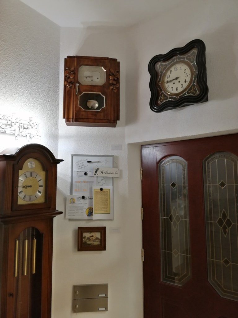 In unserem kleinen – nicht öffentlichen – Uhrenmuseum, zeigen wir über 200 Jahre Uhrengeschichte. Neben grossen mechanischen Wanduhren aus der Gründerzeit und dem Jugendstil, findet man bei uns, Rahmenuhren aus dem frühen 19 Jahrhundert, Gemäldeuhren, Tischuhren, Kaminuhren, Kartelluhren, Friesen Uhren, Spieluhren, Porzellan Uhren, Miniaturuhren, Taschenuhren, oder historische Wecker. Unsere Uhren entstammen unter anderem aus Deutschland, Schweiz, Russland, Österreich, Frankreich, Belgien, Holland, Japan, oder den USA. Alle ausgestellten Uhren ticken und schlagen.